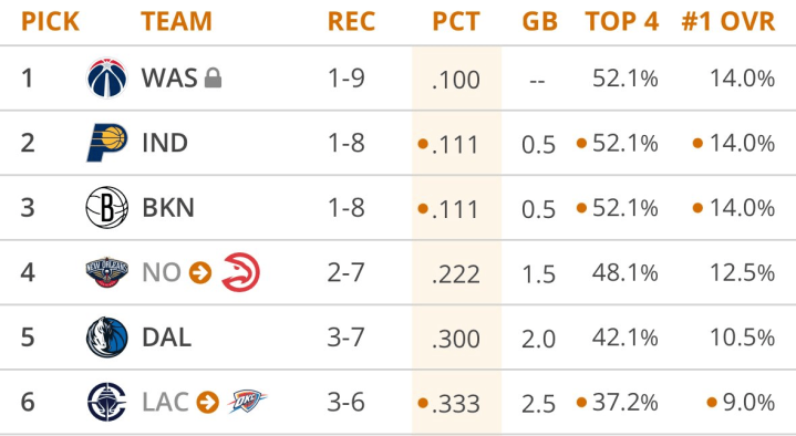 配资平台查询首推加杠网美媒晒出下赛季状元签概率前六:1.奇才——1胜9负——状元签概率14%2.步行者——1胜8负——概率14%3.篮网——1胜8负——概率14%4.鹈鹕给老鹰——2胜7负——概率12.5%5.独行侠——3胜7负——概率10.5%6.快船给雷霆——3胜6负——概率9%